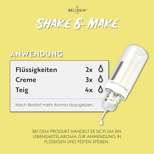 Das Belissia Shake and Make – Gebrannte Mandel Aroma bringt den süßen, nussigen Geschmack von gebrannten Mandeln in deine Küche. Dieses hochdosierte Lebensmittel-Aroma in der praktischen 10 ml Schüttelflasche ist perfekt geeignet, um Desserts, Gebäck oder Getränke einen köstlichen Kirmes-Geschmack zu verleihen. Einfach zu dosieren, ist es ideal für Kochen, Backen oder auch als Duft für Hobbys und Raumerfrischung. Verleihe deinen Kreationen eine warme, süße Note mit diesem intensiven Aroma – für eine besonders aromatische und individuelle Note in deinen Rezepten.